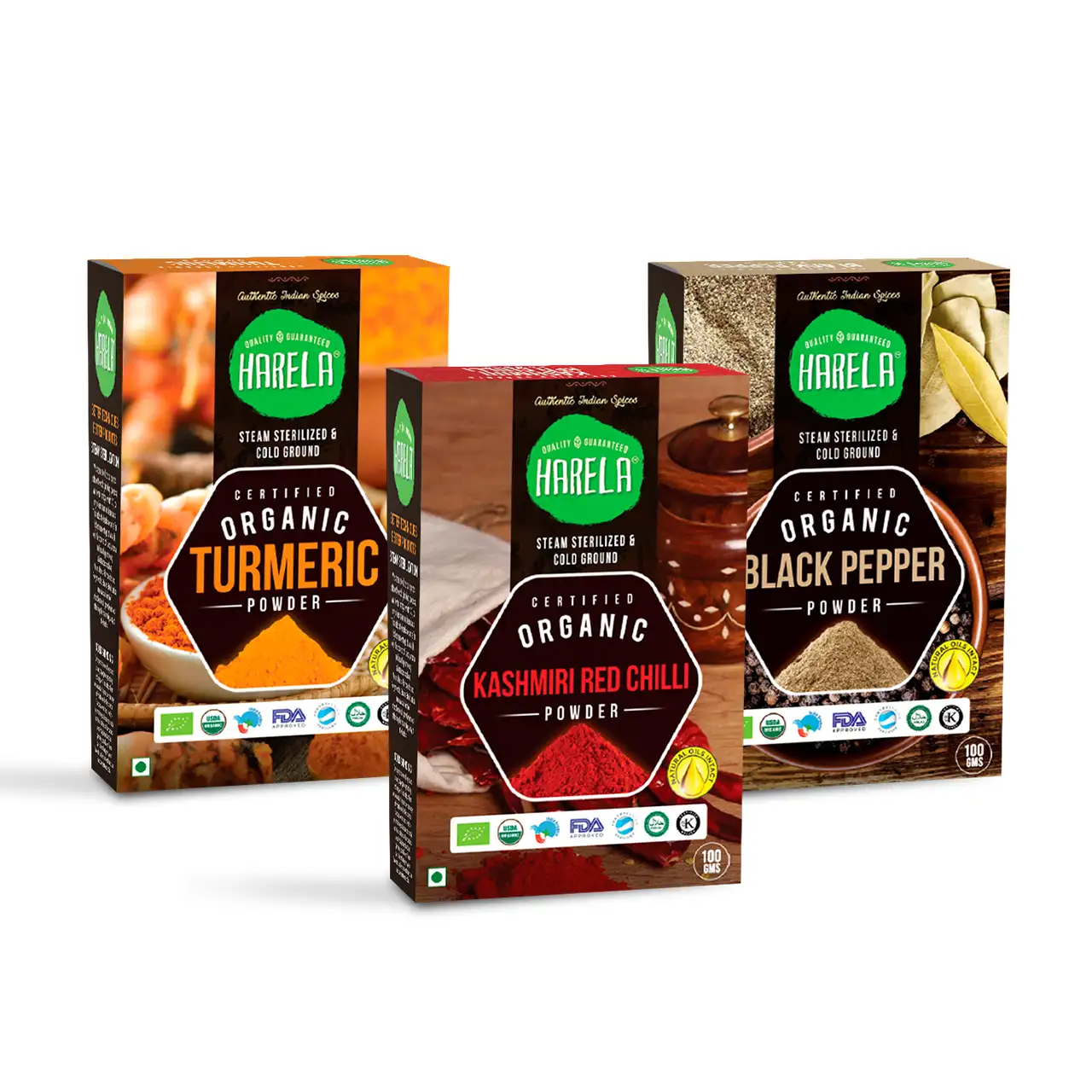 Daily Essentials Combo Pack (Red Chili, Turmeric, Black Pepper Powder) contains: